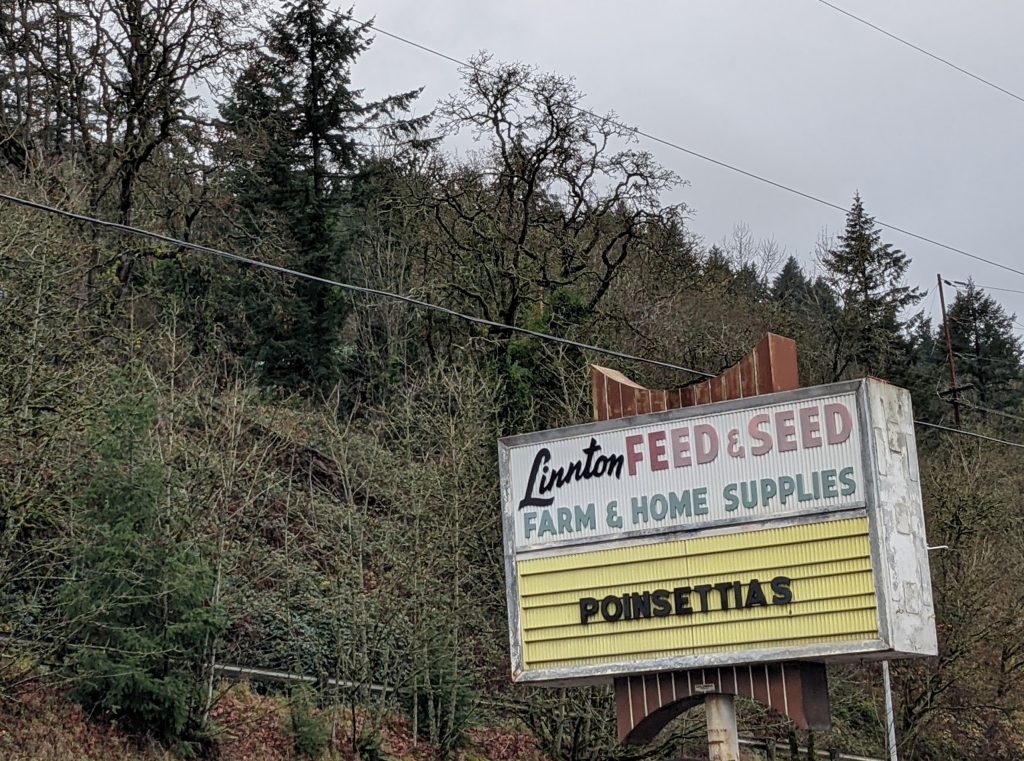 With its yellow marquee, featuring to-the-point messages ranging from practical (“Poinsettias”) to the supportive (“Black Lives Matter”) to the practical and hilarious (“Chicks”), Linnton Feed & Seed has been serving the community since 1946. You can find regular customers and first-timers any day at the store, a savvy and kind staff, the owner Darcy, and usually a friendly dog by the fireplace. (Sadly, beloved shop dog Dusty passed away this summer), but a team member’s new puppy, Laverne, might say hi.