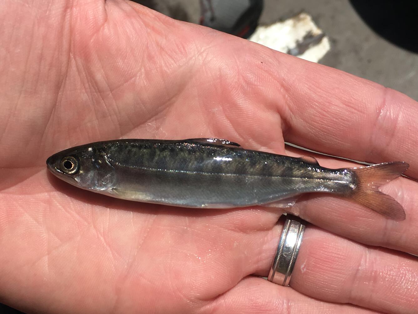 These tiny visitors hatch upstream in places like the Clackamas River and Johnson Creek. When the waters begin to warm, they begin their journey when they are only a finger-length long. Striped silver and gray, they blend into the shadows of the riverbank. Their goal? The estuaries of the Columbia River and on to the Pacific Ocean.